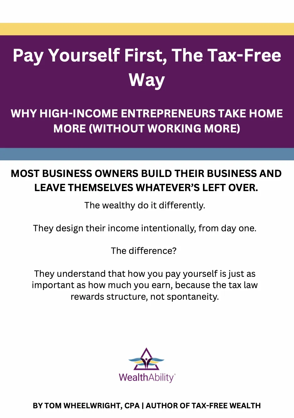 Tom Wheelwright’s results, strategies, and experiences are not typical and are not a guarantee of your financial success. WealthAbility® does not promise or imply any guaranteed outcomes, whether in tax savings, wealth building, or business growth, based on the use of our education, systems, or services. Individual results will vary widely depending on factors including personal effort, financial situation, business model, and market conditions. All content presented on this website, including but not limited to tax strategies, videos, frameworks, and written material, is the intellectual property of WealthAbility®, LLC. Unauthorized use, reproduction, or distribution of any material without express written consent is strictly prohibited.